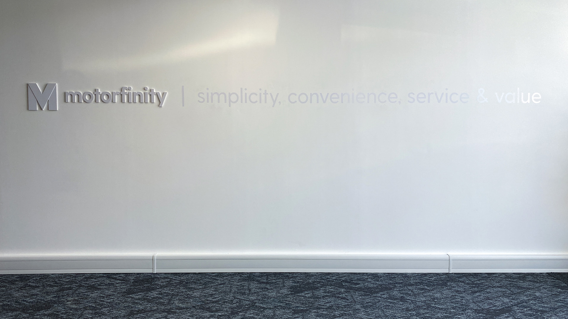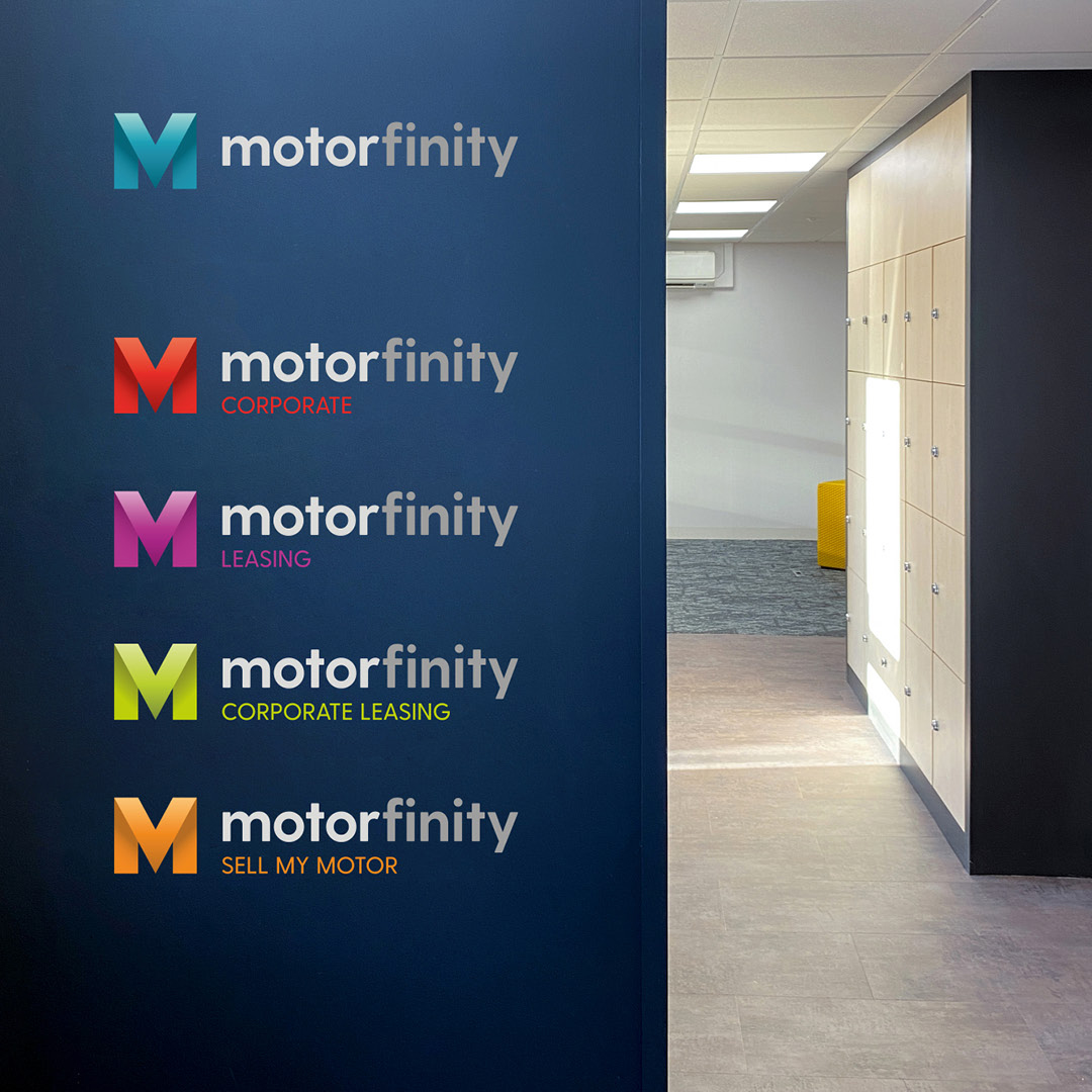 Refreshing the brand of specialist car discount company Motorfinity. They work exclusively with keyworkers, military and front-line personnel, so it was essential to create an identity that would appeal to this special, selfless group of people. This was then brought to life across their office interiors and marketing collateral.