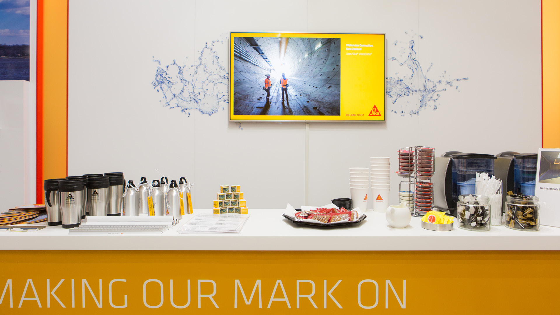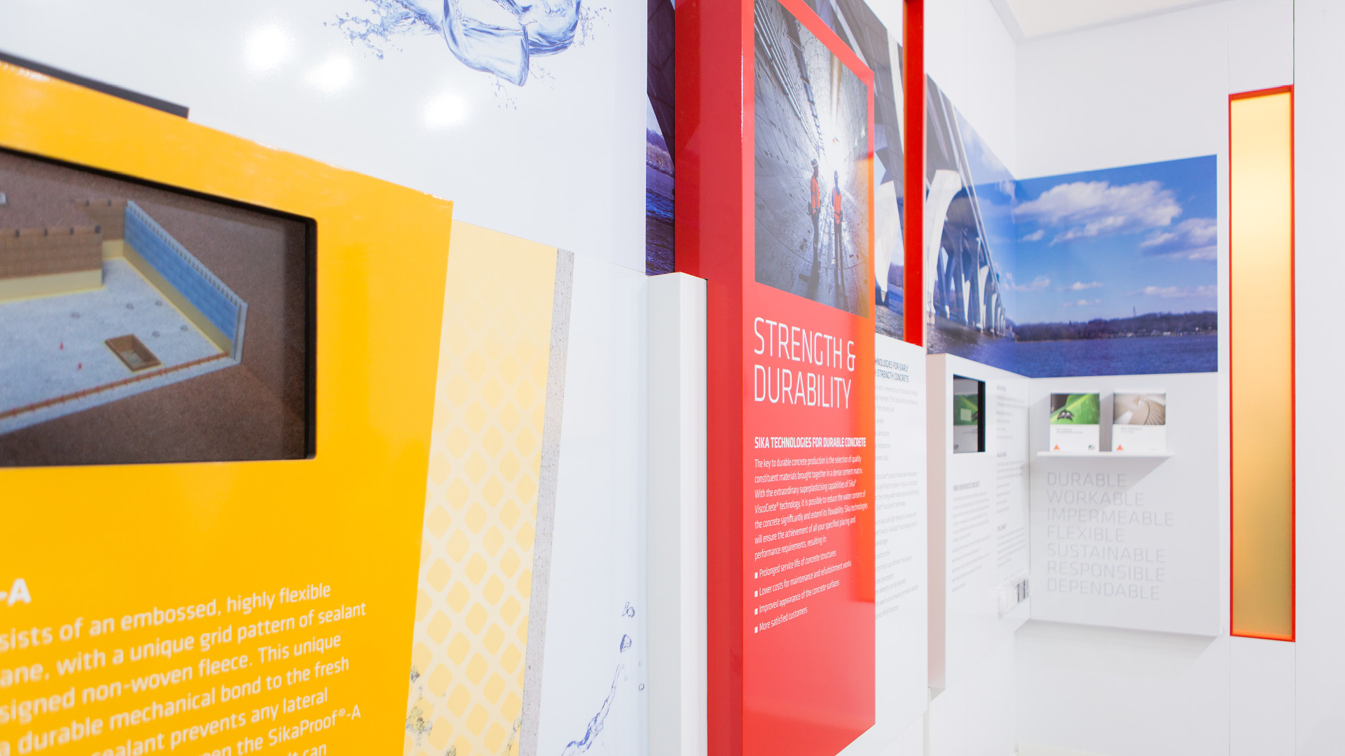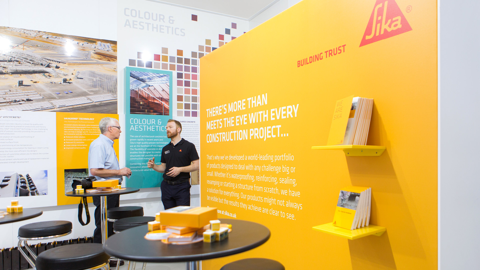 Design and artwork of a unique ‘concrete box’ stand for chemical company Sika to showcase their specialist waterproofing products at the Evolving Concrete exhibition. The stand itself was coated in Sika’s products and featured a living concrete sculpture, accompanied with striking video content and bespoke waterproofing giveaways.