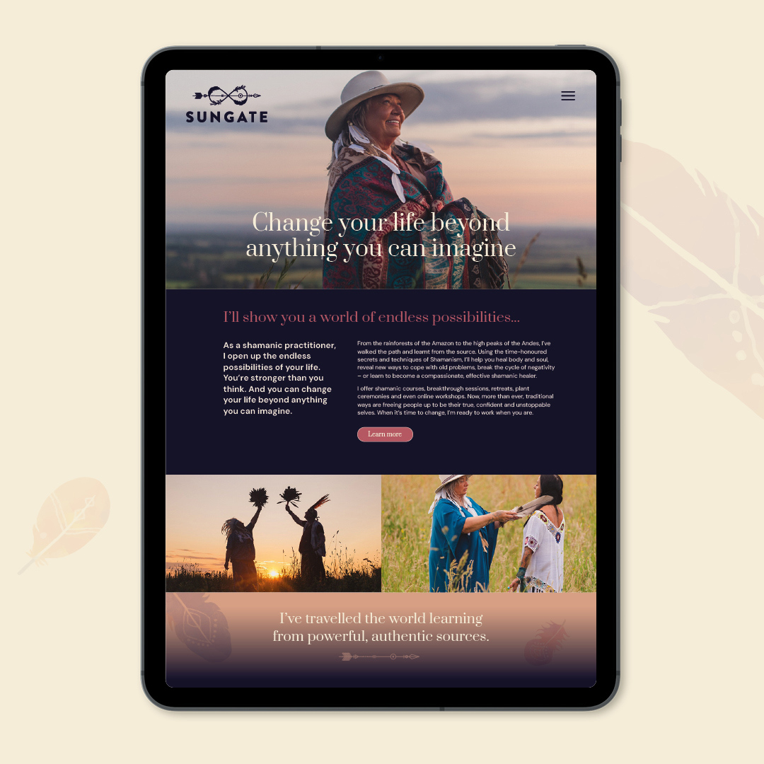 Developing a holistic brand approach for shamanic training and workshop provider SunGate. The logo was inspired by traditional tribal art and the colours and fonts provide a warm, natural feel, to reflect SunGate’s approach and connection with the Amazonian Communities.