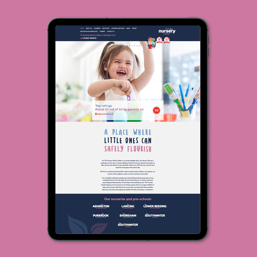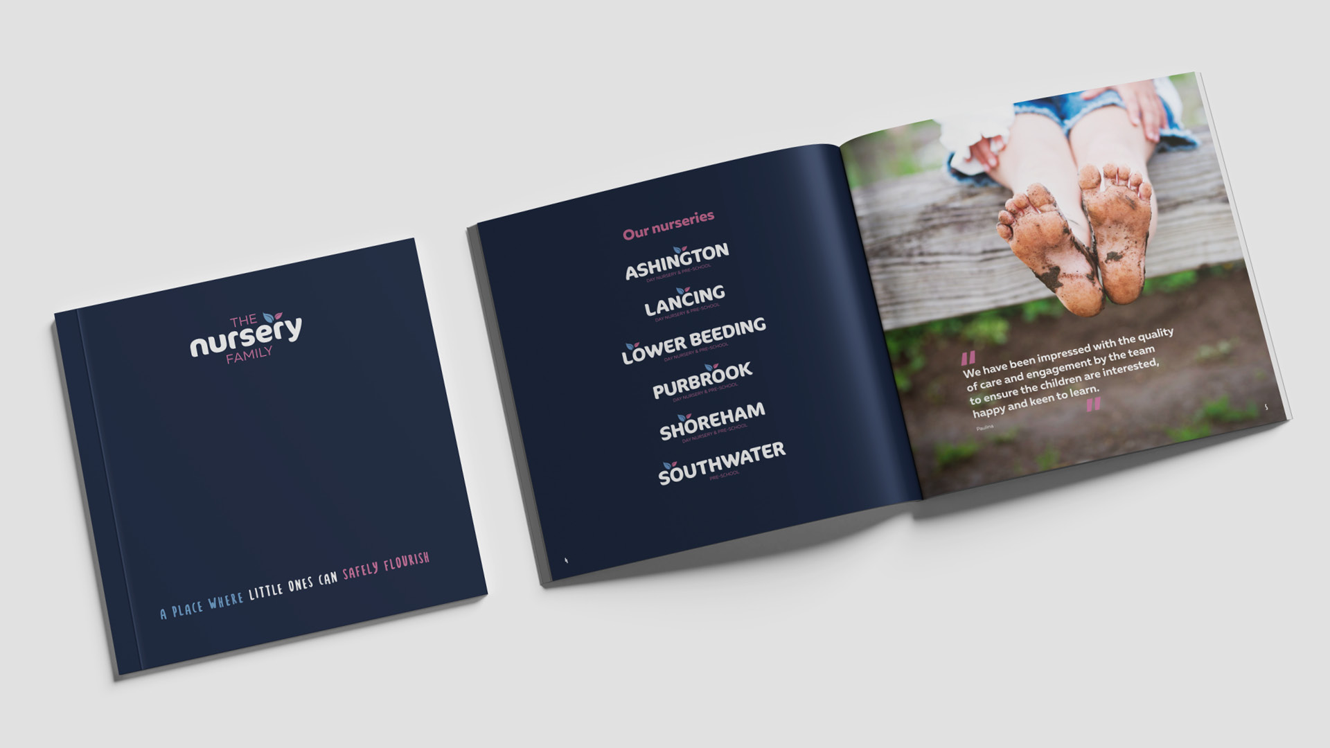 Establishing a new brand identity to unify a group of nurseries and pre-schools. From devising ‘The Nursery Family’ name, playful typography and soft, friendly visual approach, through to producing a suite of marketing collateral and interior branding. And even roping in my own daughter to provide the voiceover for the video tours!